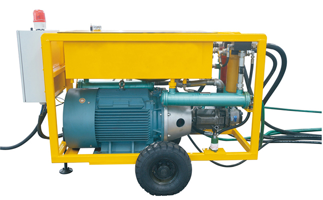 La unidad de potencia está montada en un carrito pequeño con ruedas, facilitando una fácil reubicación. Durante la instalación, también se puede colocar a cierta distancia de la máquina principal.
